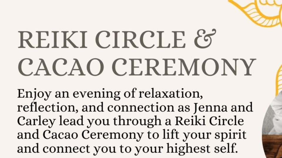 Enjoy an evening of relaxation, reflection, and connection as Jenna and Carley lead you through a Reiki Circle and Cacao Ceremony to lift your spiritand connect you to your highest self.